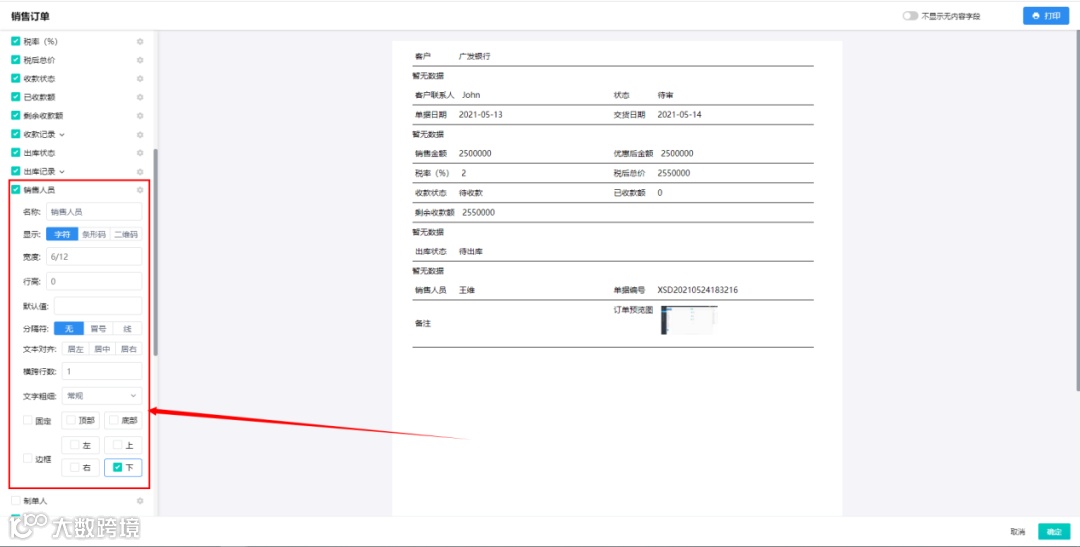 横跨行数设置:可设置字段的横跨行数,布局会根据横跨行数大小自动进行调整。