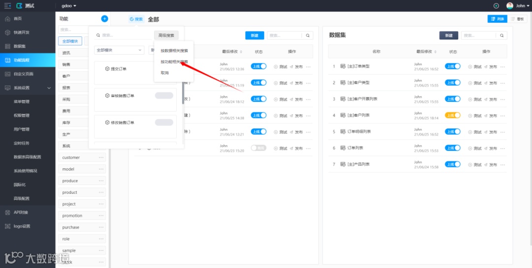 按功能相关搜索(平台端)