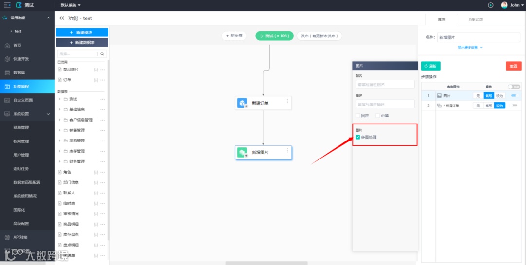 新版本能实现多图上传功能,需要在平台端的集合步骤中开启“图片多图处理”后,用户端方可使用此功能。