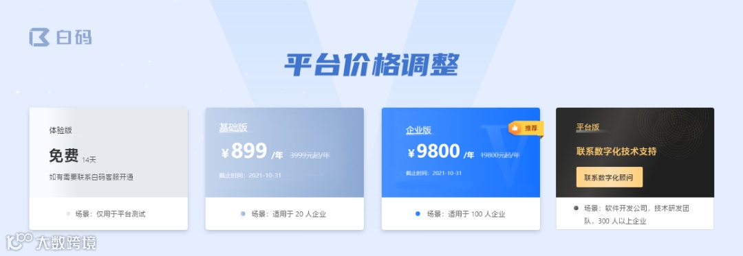 基础版本价格调整后,相对应的权益变化可以前往白码官网查看。