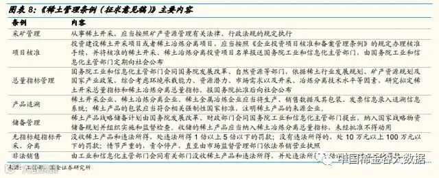 《稀土管理条例》奠定稀土行业良性发展之路。2021年1月15日,工信部发布《稀土管理条例(征求意见稿)》并向社会公开征求意见。征求意见稿共29条,明确稀土管理职责分工,稀土开采、冶炼分离投资项目核准制度,稀土开采和冶炼分离总量指标管理制度等,并强调加强稀土的全产业链管理,强化监督管理。6月11日国务院在立法工作计划中将《稀土管理条例》列入2021年拟制定、修订的行政法规;7月8日工信部副部长在工业和信息化系统产业政策与法规工作视频会议中表示将尽快推动《稀土管理条例》出台。