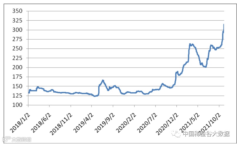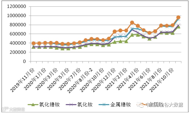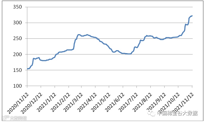 图1 镨钕系轻稀土挂牌价格走势图(201911-202111)