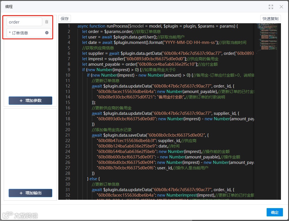 let order = $params.order;//获取订单信息