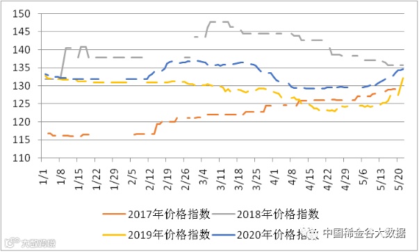 图3 2017-2020年稀土价格指数同期走势图
