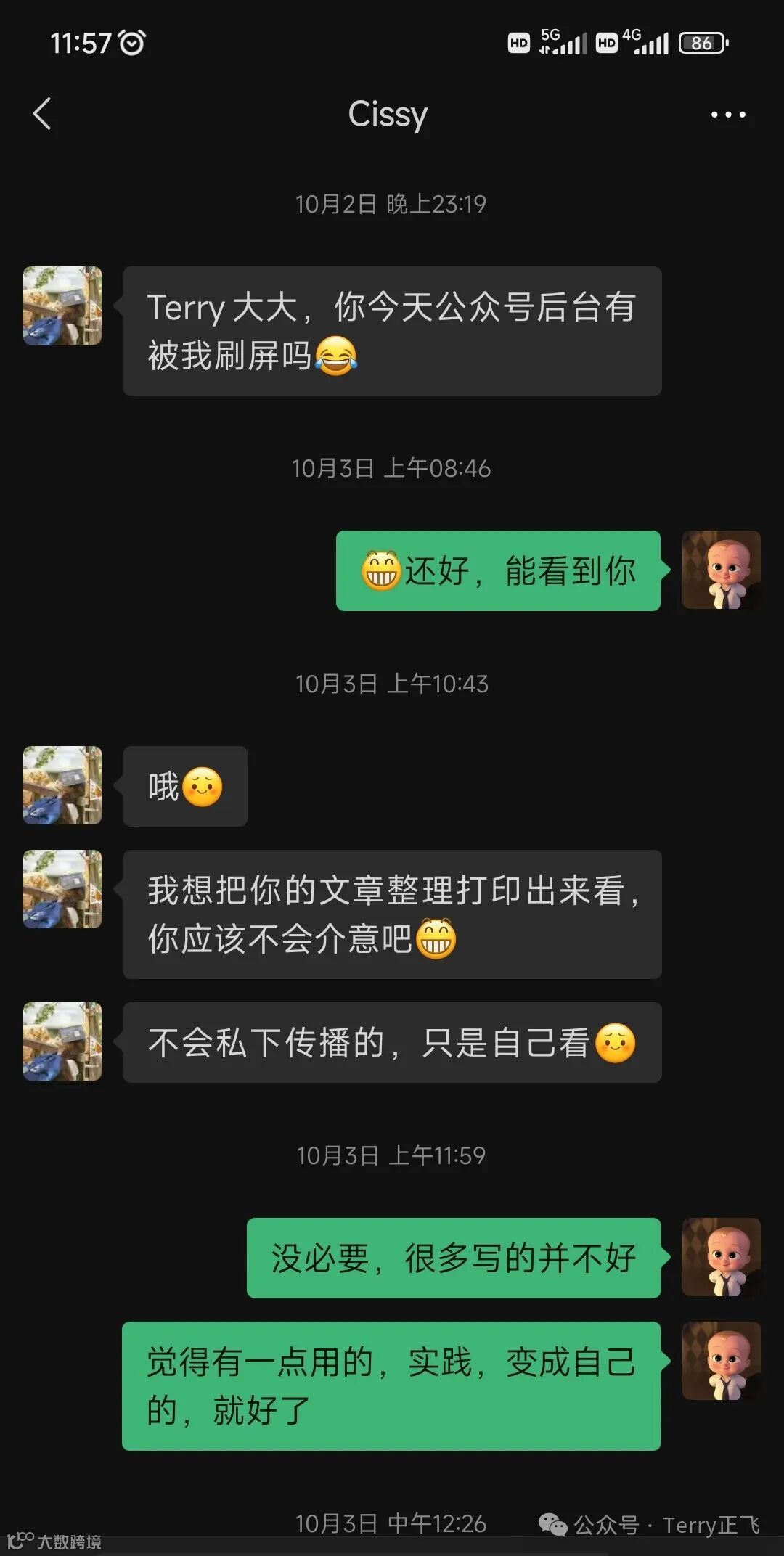 对了,Cissy,我真的没骗你,那天你没有刷屏。