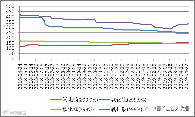 2018-2019年氧化铕(钆、钬、铒)价格走势图 元/公斤