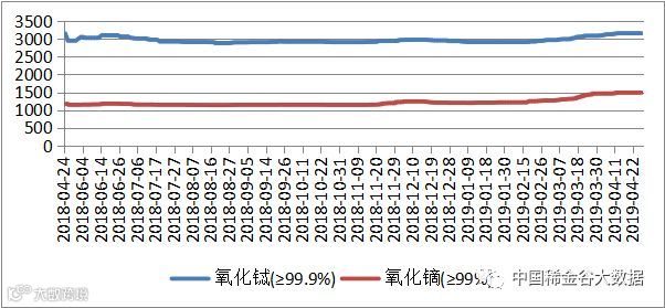 2018-2019年氧化铽(镝)价格走势图 元/公斤