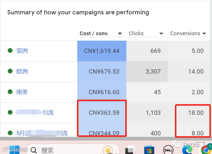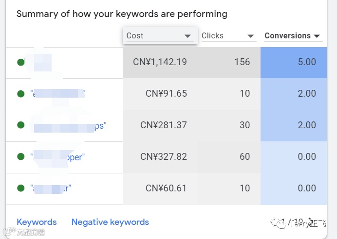 最后你会发现,真正带来转化的也就那么几个词而已……过一段时间,跑出数据以后,就可以去数据分析,做一些调整方案,继续测试优化。