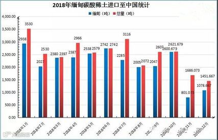 2018年11月初,缅甸方面传出“中央”与“地方”因利益分配不均,导致缅方开始禁止中国企业运输稀土矿开采辅料。作为对此的回应,云南腾冲海关宣布缅甸所有资源类产品无法进口到中国。12月14日,腾冲海关针对缅甸稀土矿通关,执行期5个月,即2019年5月起将重新全面禁止缅甸稀土矿进口中国;同时原材料端只允许出口草酸和碳酸铵、不允许出口硫酸铵至缅甸,且具有进出口资质的企业仅6家。