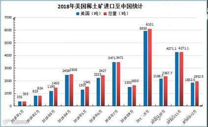 2018年12月稀土金属矿进口量1953吨,其中美国进口量1853吨,占12月总进口量的95%。2018年稀土金属矿进口量总计28918吨,其中美国进口量27568吨,占我国全年进口总量的95.3%。