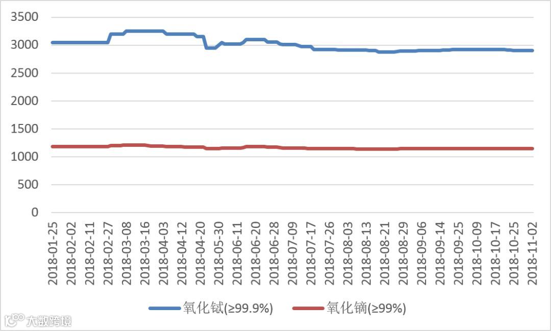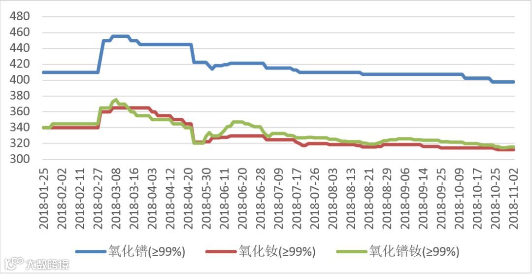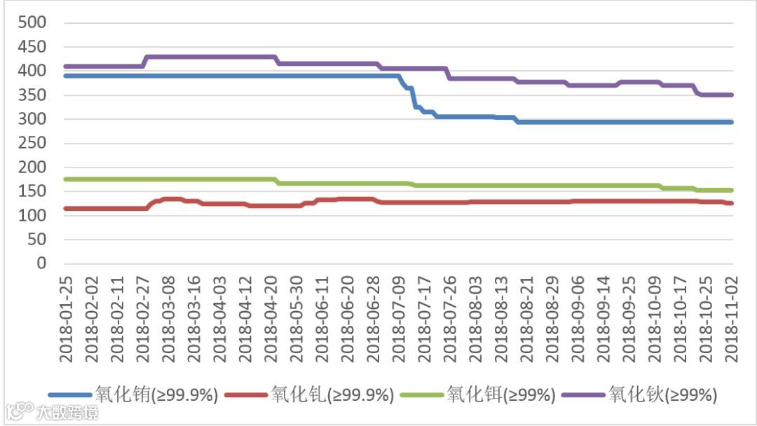 2018年氧化镨(钕、镨钕)价格走势图 元/公斤