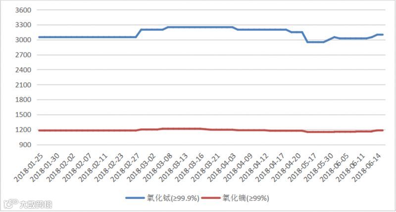 2018年氧化铽(镝)价格走势图 元/公斤
