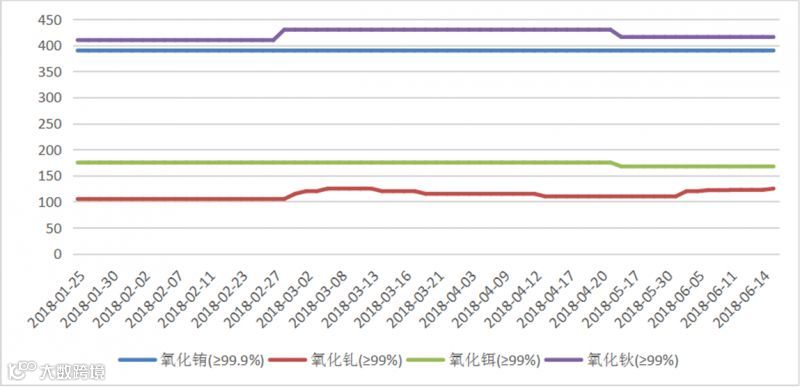 2018年氧化氧化铕(钆、钬、铒)价格走势图 元/公斤