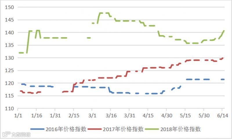 2016-2018年稀土价格指数同期走势图