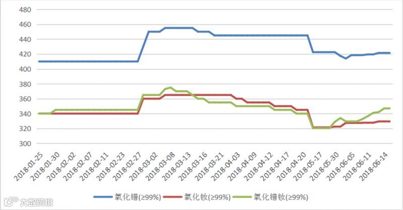 2018年氧化镨(钕、镨钕)价格走势图 元/公斤