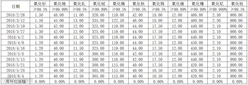 表一 中重稀土氧化物2018年2-6月挂牌价格 万元/吨