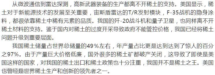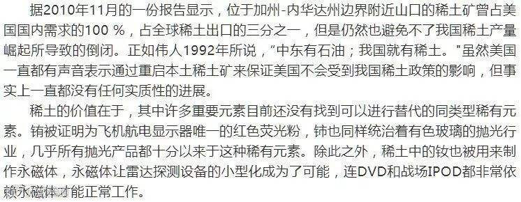 稀土是美国武器装备的维生素