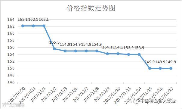 本周稀土价格指数位于153.9-149.9之间,本周前两天价格指数较稳定,后三天指数值小幅下降,在价格指数走势图中形成了三个单幅下降的台阶。自本月初价格指数由162.1下跌至149.9后,指数变化平稳,但均在微幅下降。