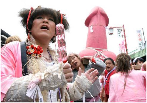 时间:4月的第一周 地点:日本川崎 经过:这是男性生殖器的庆典,粉红的生殖器帽、生殖器彩车、生殖器和服以及各种生殖器状物品! 原因:这一祭典始于17世纪,传说妓女对“铁男根”神祈求自己不得病,铁男根祭的现代意义则是把活动募捐到的钱捐给艾滋病研究机构。