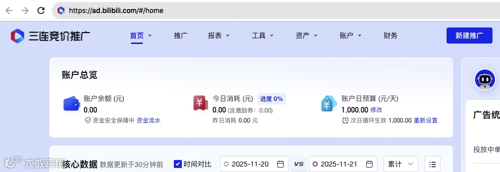 首先,访问B站三连推广官网并登录您的广告主后台。