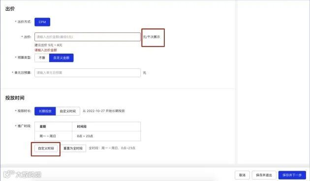 下一步开始设置出价,价格高低将会直接影响直播推广推送效果。