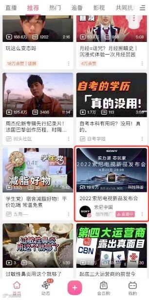 以前B站带货直播并没有单独的公域入口,用户只能从UP主的账号、内容页面或者B站直播页面的推荐页,进入带货直播间。