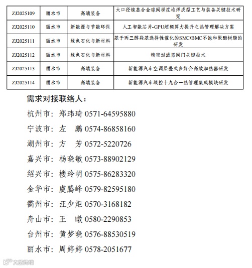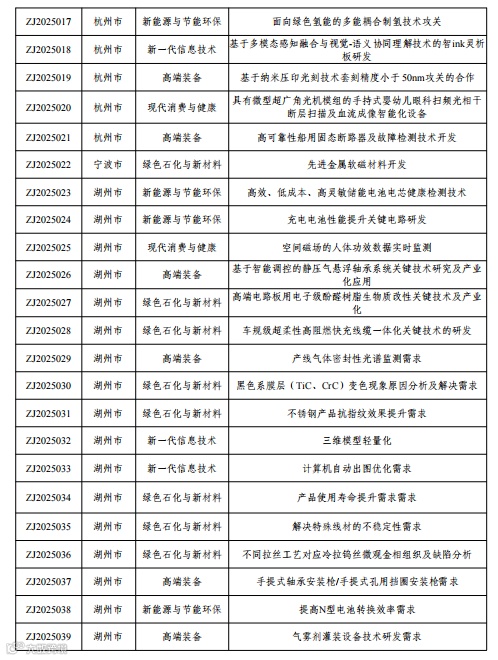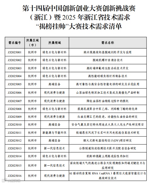 附件:1.第十四届中国创新创业大赛创新挑战赛(浙江)暨2025 年浙江省技术需求“揭榜挂帅”大赛技术需求清单