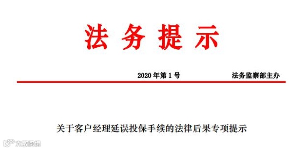 接着,法务监察部又向各分支机构、区域办公室下发一则法务提示-2020年第1号-关于客户经理延误投保手续的法律后果专项提示。