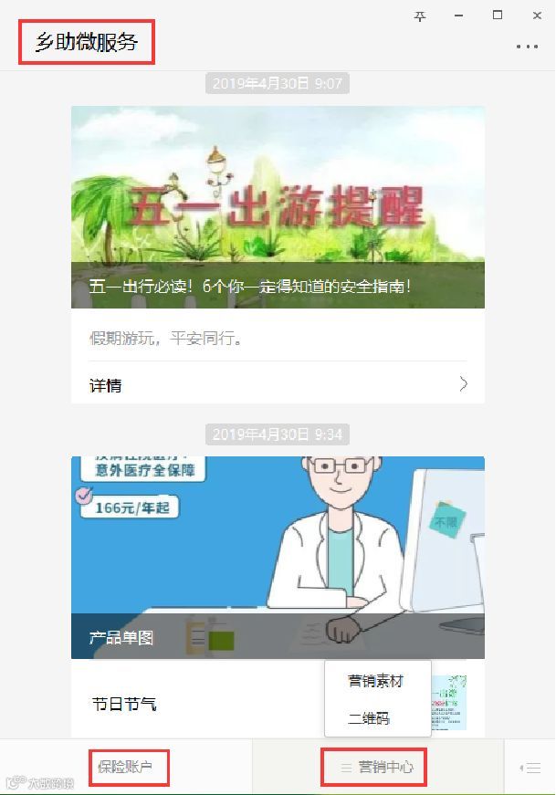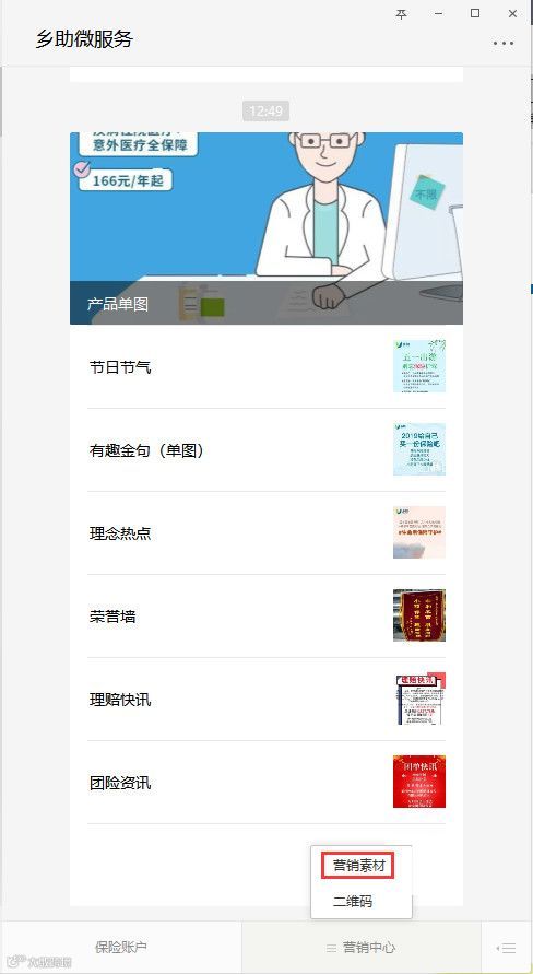为了使我们的客户经理,更加轻松快捷的维护自己的客户群体。乡助微服务为您带来最新营销武器,为您提供最全面的营销素材库!助力您保险业务的全面开展!!