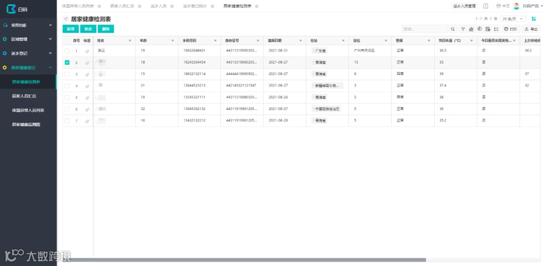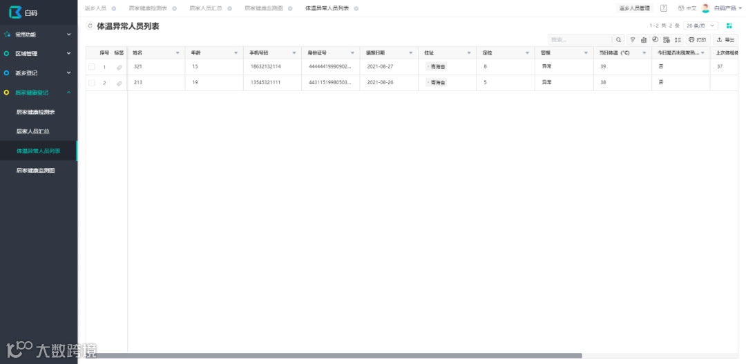 返乡人员管理系统可智能跟踪返乡人员信息,降低疫情防控人员工作量,提高工作效率。