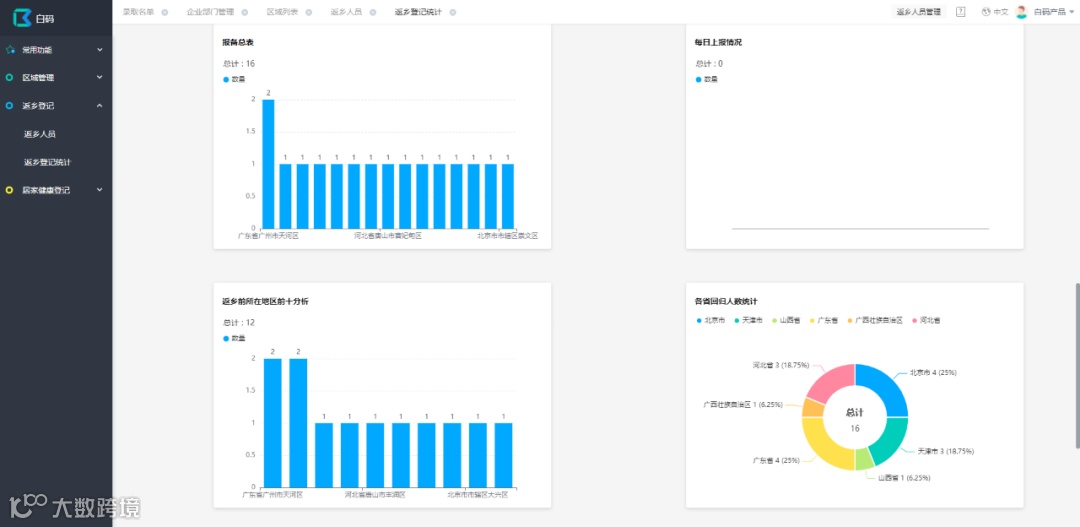 对返乡人员数据需要传统表格统计,直观性弱,无法快速查看比较返乡数据。