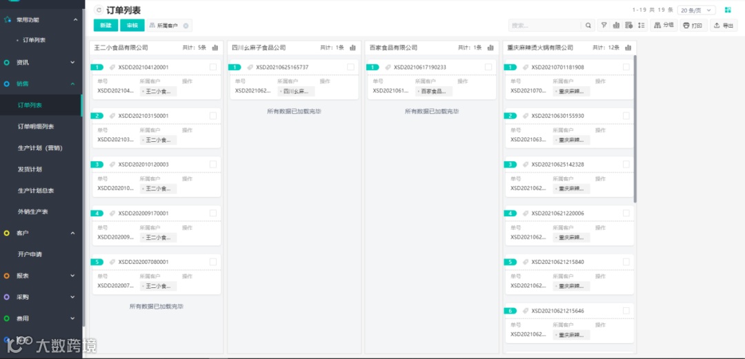 在白码上能对数据进行分组显示,比如在订单列表中,将数据按照客户进行分组显示,每一列对应的就是一个客户的所有订单数据。