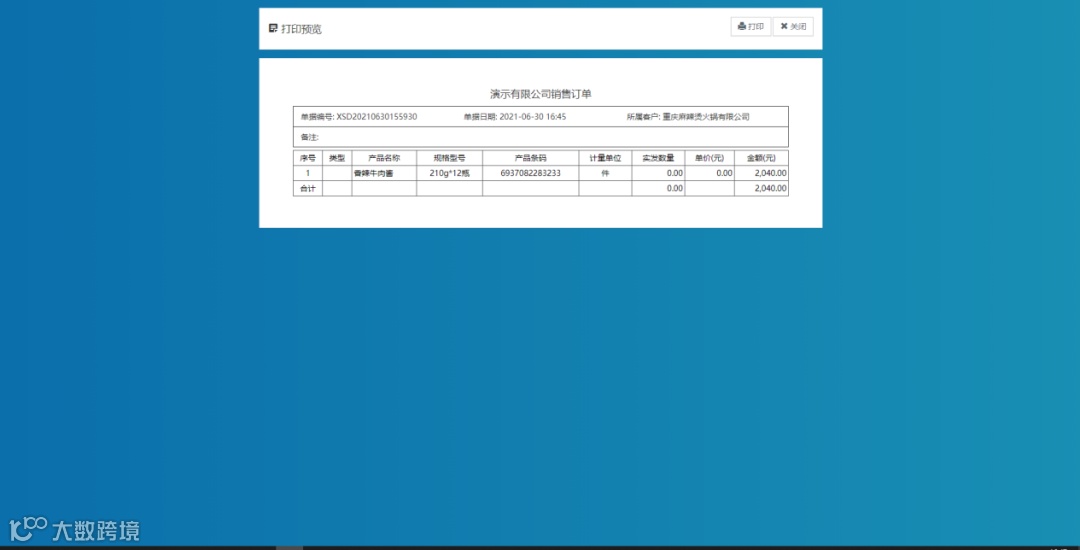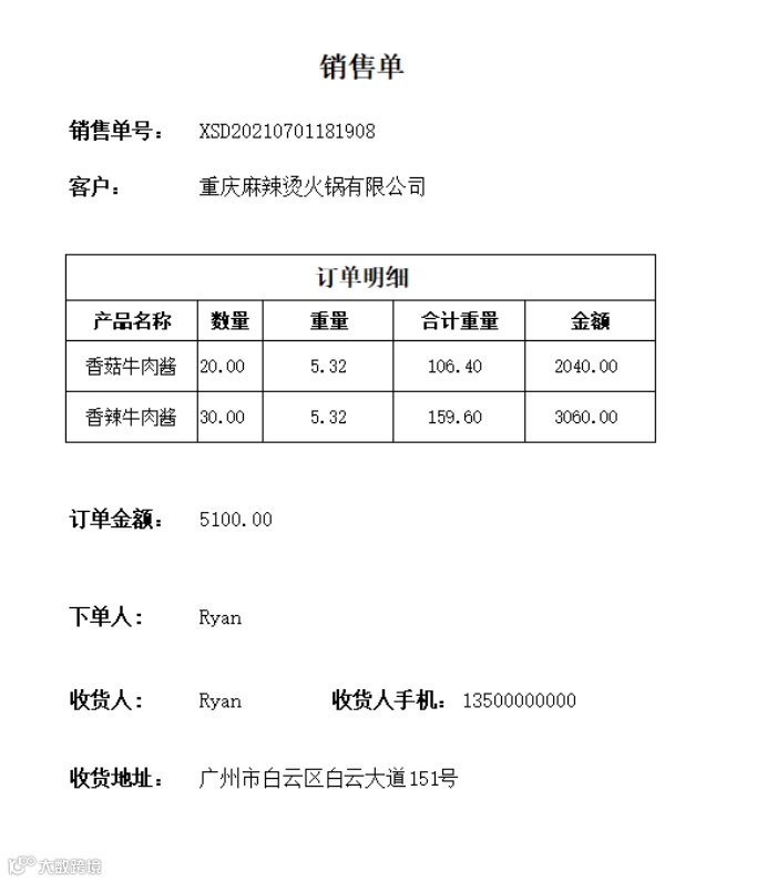 这个模板是我随意设置的一个建议的销售单的模板,意在说明此功能可以根据自身需要来对数据进行导出,并且用excel来进行排版,而不是只能全部导出,把不需要查看的字段数据也导出来。