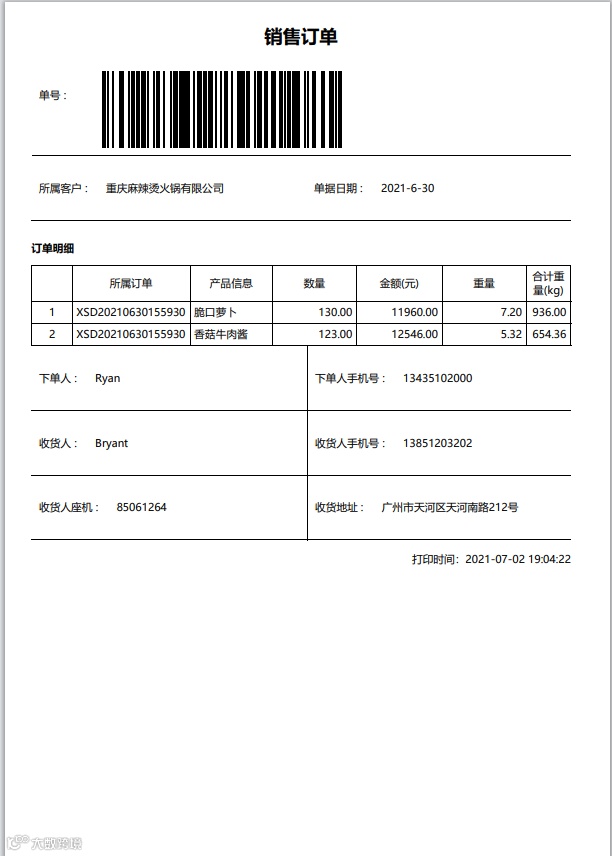 原有系统的打印功能无法自由排版,无法选择纸张方向,只能按照固定的样式来进行打印,与白码上打印的灵活度相比差太远了。比如我想打印一个内容更加丰富的销售订单都不行,上面的内容只有寥寥无几的几项内容,这一个打印功能就比较鸡肋了。