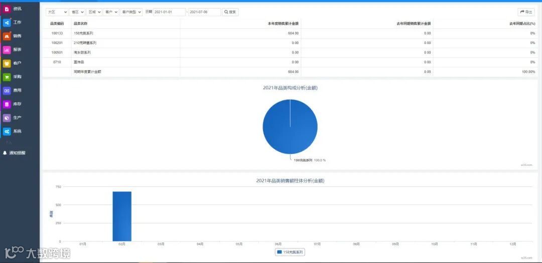 原有系统只提供了几个已有的统计报表,统计起来有局限性。不仅如此,系统里面只有销售品类的汇总表有两个可视化图表,并且这两个统计图表只能修改时间段这一个维度,无法自定义设置需要统计的内容。