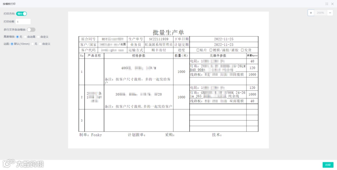 图片注释 :生产单打印