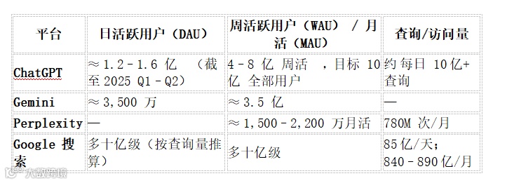 针对行为1,我们首先需要一个前提条件,大量用户使用这类生成式AI进行内容检索,就目前而言不论是GPT还是PREPLEXITY和GOOGLE搜索的日活,其实还不在一个量级。