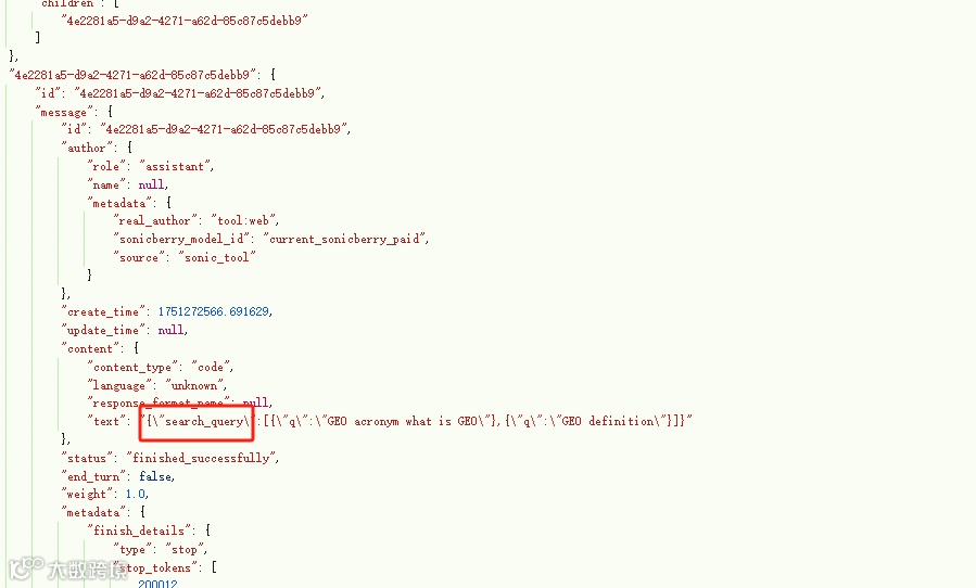 然后我们找到“search_query”这个字段,后面Q=的内容就是AI使用的搜索词