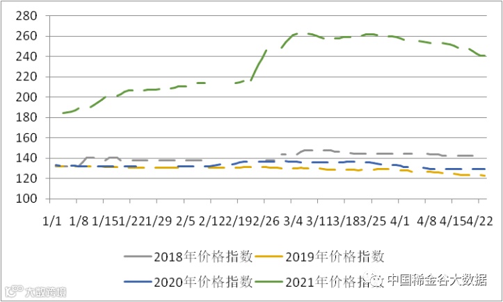 图4 2018-2021年稀土价格指数同期走势图