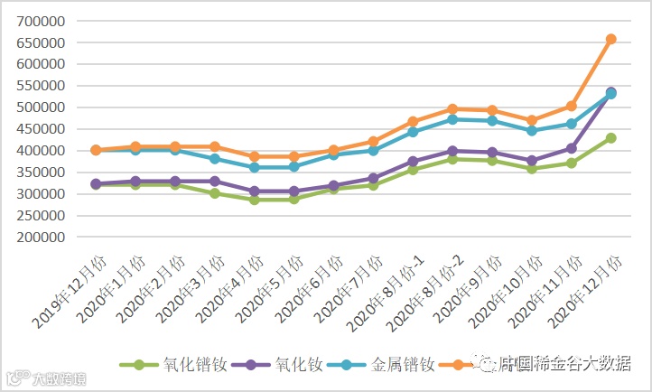 图1 镨钕系轻稀土挂牌价格走势图(201912-202012)