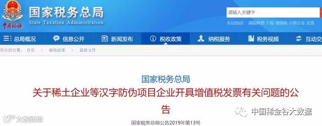 为了适应稀土行业发展和税收信息化建设需要,现将稀土企业等纳入增值税汉字防伪项目管理企业开具增值税发票有关问题公告如下: