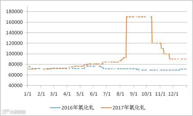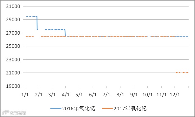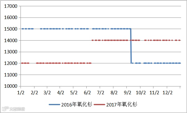 2016与2017年氧化钇价格走势图 元/吨
