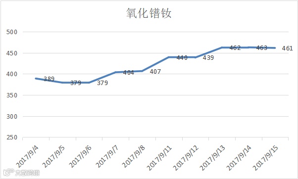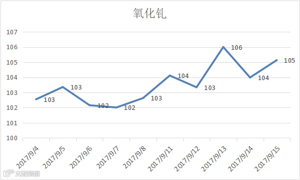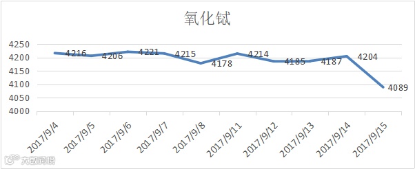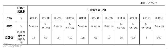 9月11日南方稀土集团公司公布中重稀土氧化物挂牌价(表一),与上周公布价格对比,本周挂牌价只有氧化镝每吨上涨5万元,其它氧化物价格持平不变。