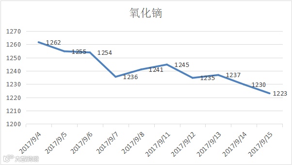 本周市场行情交易冷淡,价格仍然有小幅下滑,市场交易价格低于挂牌指导价。但一方面由于接近年底,各大工厂的指令性计划指标快用完,稀土工厂快停厂,供应将会出现紧张;另一方面,由于前期因环保问题停产的南方一些钕铁硼工厂已经陆续恢复生产,部份工厂因赶订单而满负荷生产,故稀土市场需求将会增大。总体来看,市场这种僵持局面将很快打破,稀土后市还有可能会出现上涨的趋势。也正鉴于此,部份大厂仍以市场价格收氧化镨钕,为后期指令性计划指标用完后的生产提前备一些库存。