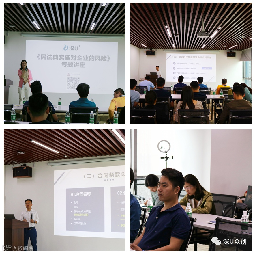 3月27日下午,深U+众创空间成功举办民法典实施对企业的风险专题讲座。邀请了广东炬力律师事务所的孙建律师作为主讲师,结合近年来各类企业运作和发展状况,针对性地剖析了企业应收账款相关法律问题,旨在帮助企业掌握账款控制内容,树立正确的风险管理意识,提升企业的法律风险防范能力。得到了在场参会者的广泛好评。