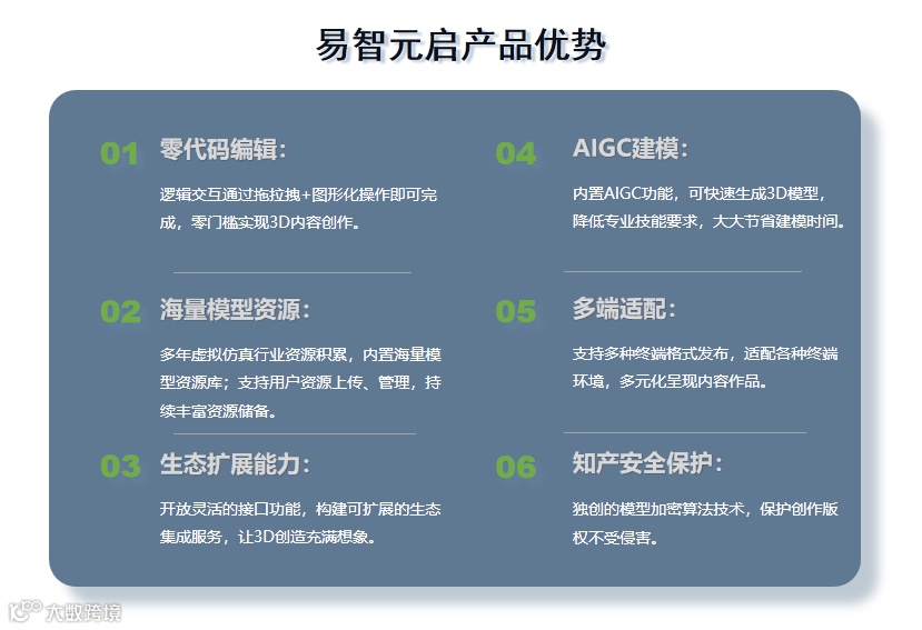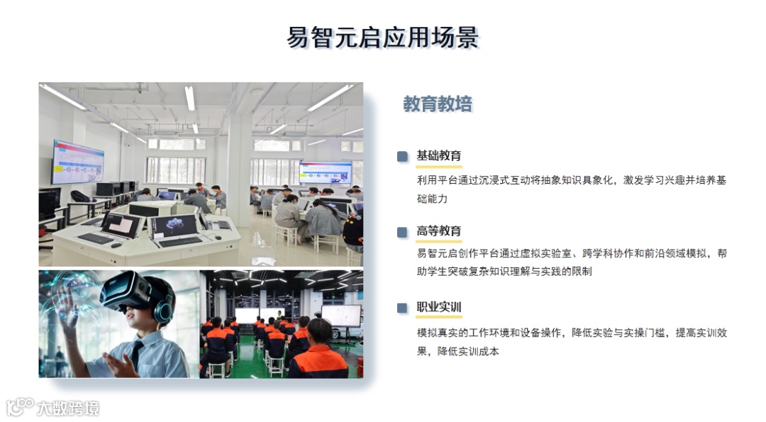 易智时代深耕XR、数字孪生领域近20年,始终坚持自主技术创新和模式创新,成立产业技术研究院和全国中小城市数字经济研究院,技术团队由院士指导,多位清华博士领衔,以XR为技术基座,融合人工智能、大数据、物联网、5G通信等尖端技术,打造“4+2+N”全栈式数字孪生产品体系,赋能传统行业智改数转。