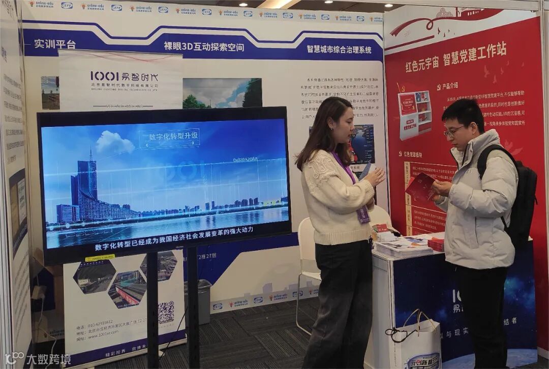 本次大会展会,易智时代携XR职业技能实训平台、裸眼3D互动探索空间、红色元宇宙智慧党建工作站等多款数智化学习产品参展,引起参会嘉宾的兴趣和关注,纷纷前来咨询、交流、体验,就下一步合作进行探讨。