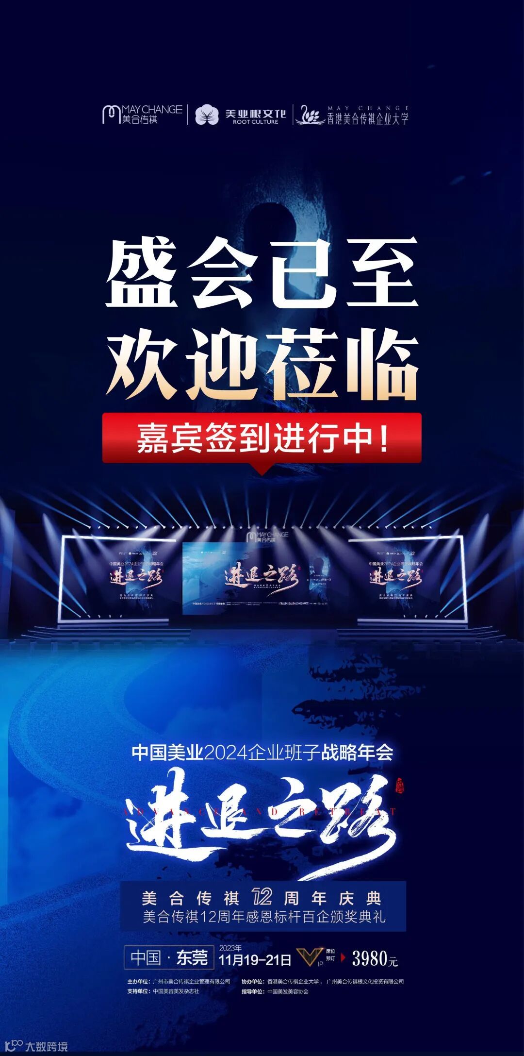 欢迎您出席2023年11月19日至21日中国美业2024年《进退之路·企业班子战略年会》,首先感谢您企业和智慧的您选择来参加美合传祺十二周年年会,我谨代表美合传祺欢迎您前来参会,十分感谢您和您团队的支持。