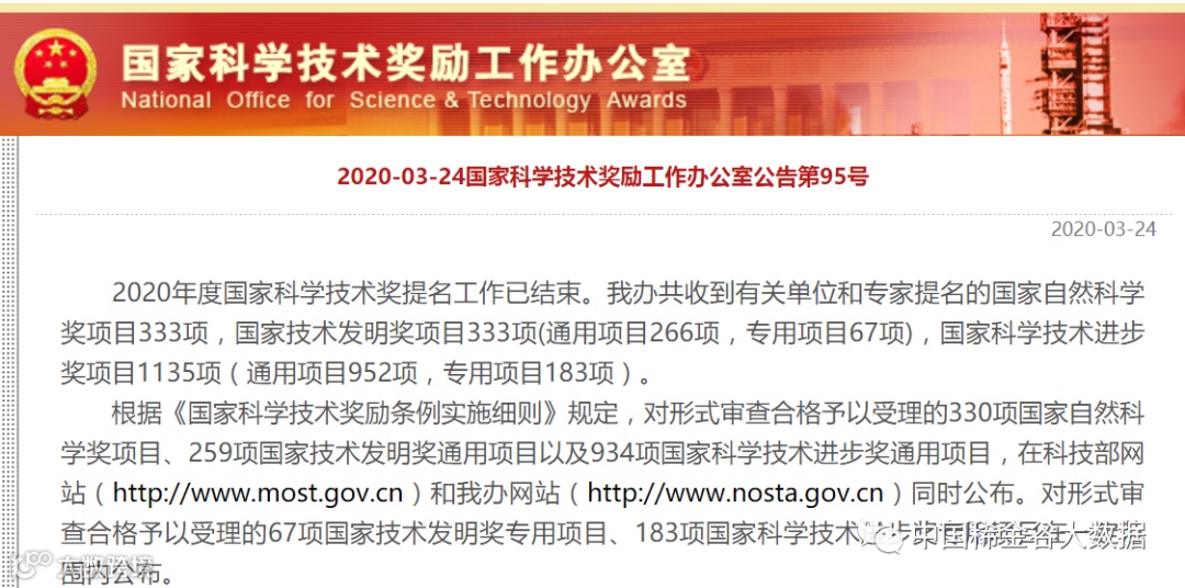 3月24日,国家科学技术奖励工作办公室发布国家科学技术奖励工作办公室公告第95号,具体如下: