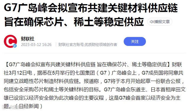 另外,G7国家组建供应链联盟,将在5月份举办的峰会上宣布共同建立战略性芯片制造材料供应链,包括采购稀土等关键材料。换句话说,G7成员国在寻求稀土材料的替代方案,降低对中国稀土的依赖。或许有人会觉得,西方开始和中国稀土脱钩不是件知道高兴的事情,一旦他们摆脱中国稀土,那中国稀土岂不是要落入下风了?
